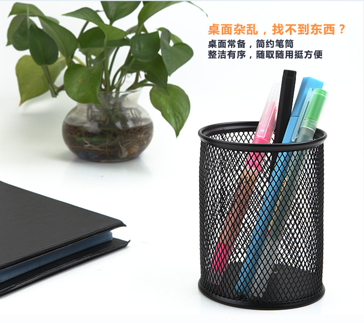 产品名称 : 广博(GuangBo)WZ5922 圆形金属笔筒 网格铁笔筒 圆形收纳笔座 网纹笔插 办公用品