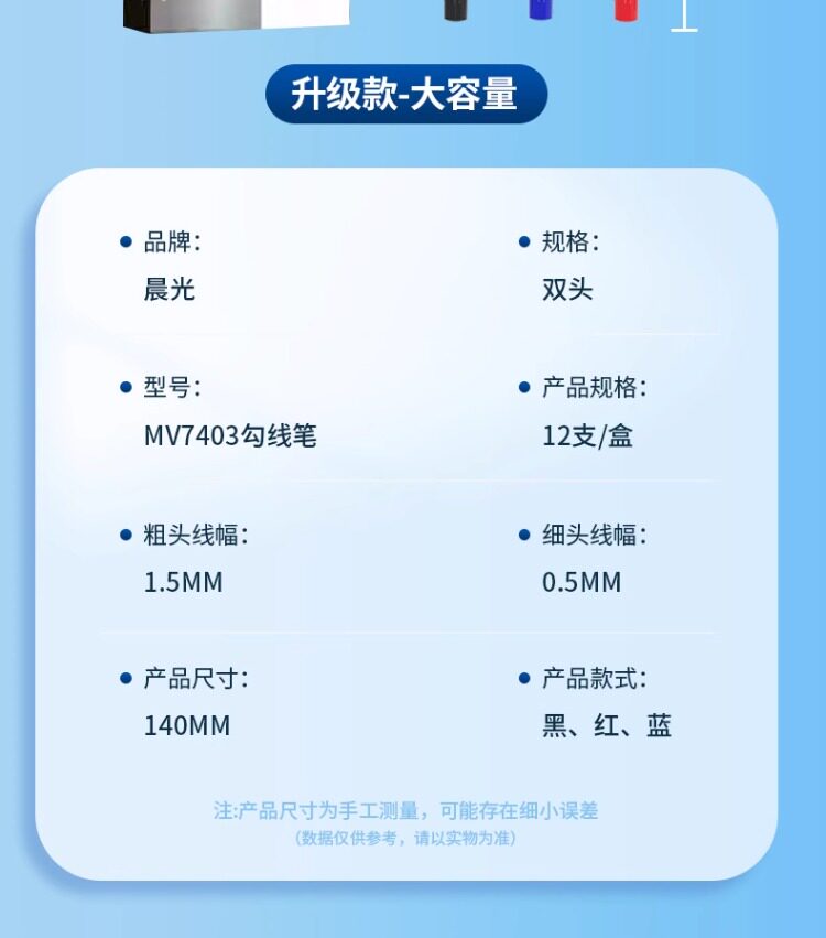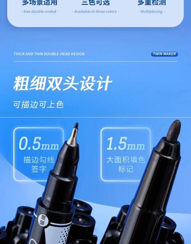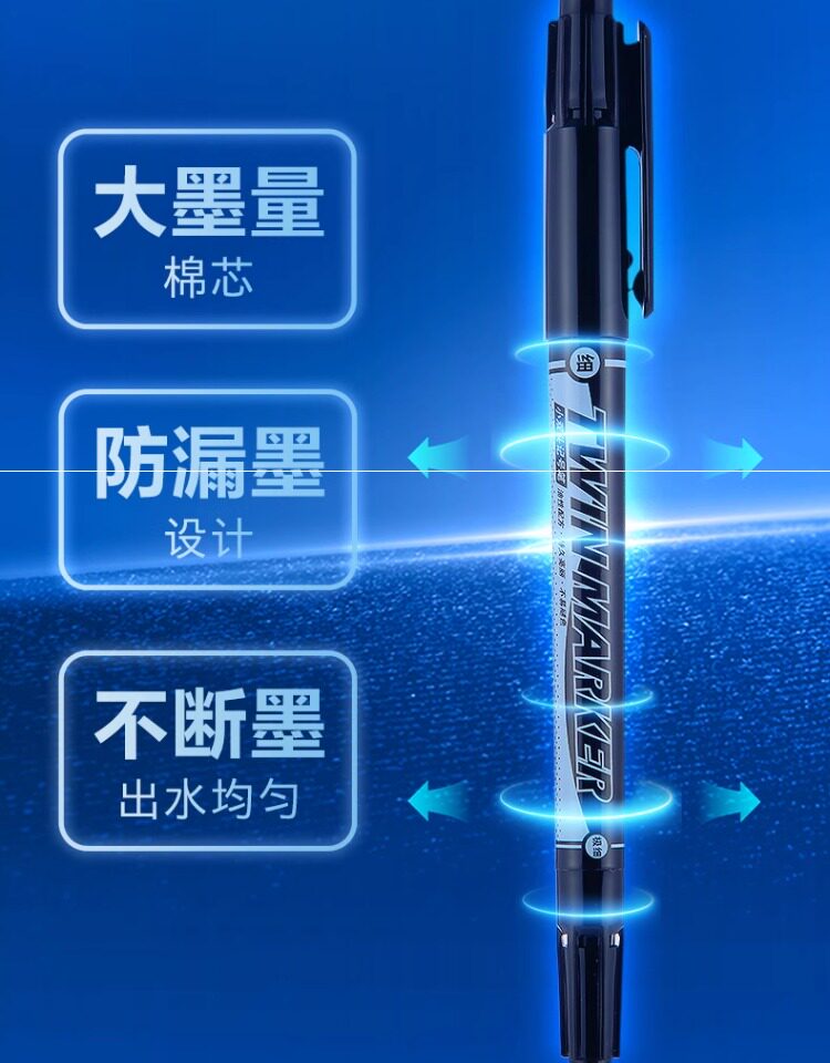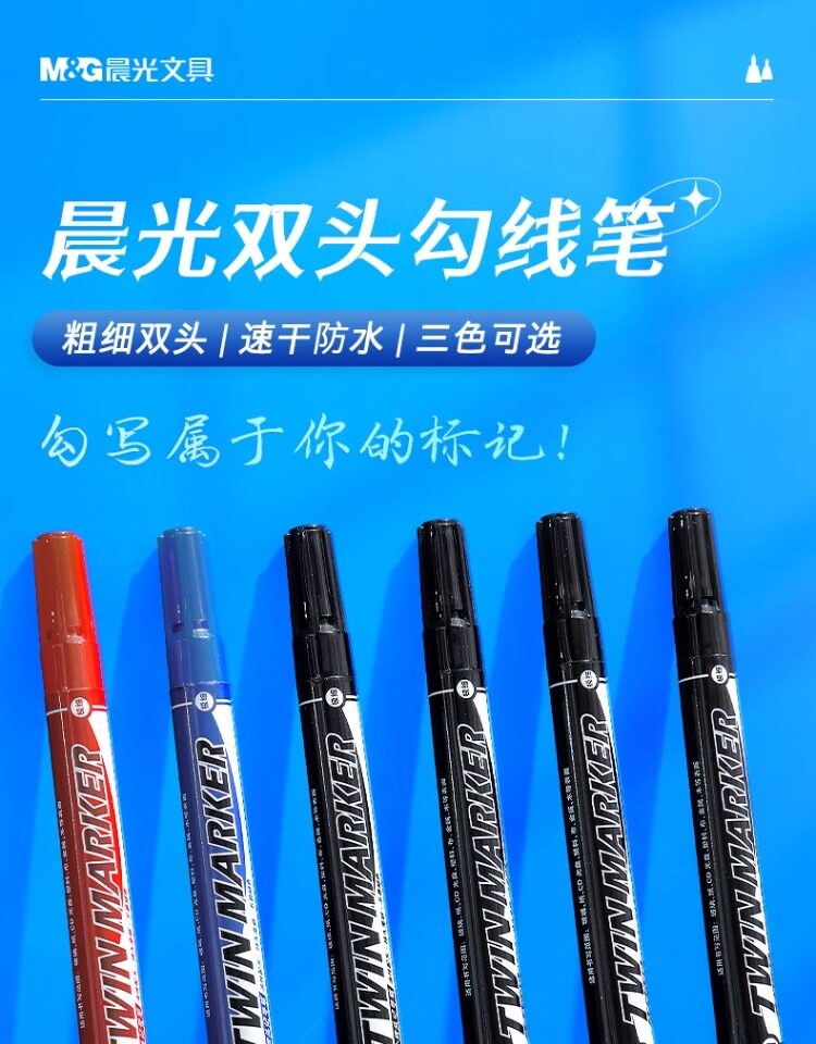 产品名称 : 晨光双头黑色油性记号笔小学生美术专用勾线笔/12支