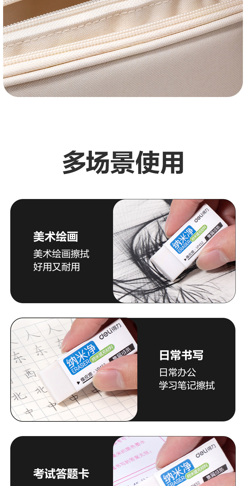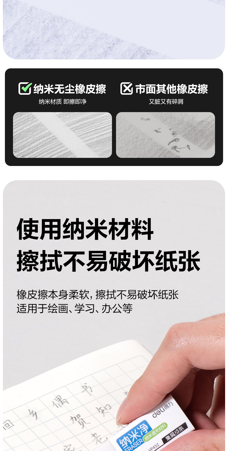 产品名称 : 得力纳米净真集屑橡皮擦小学生专用/12块