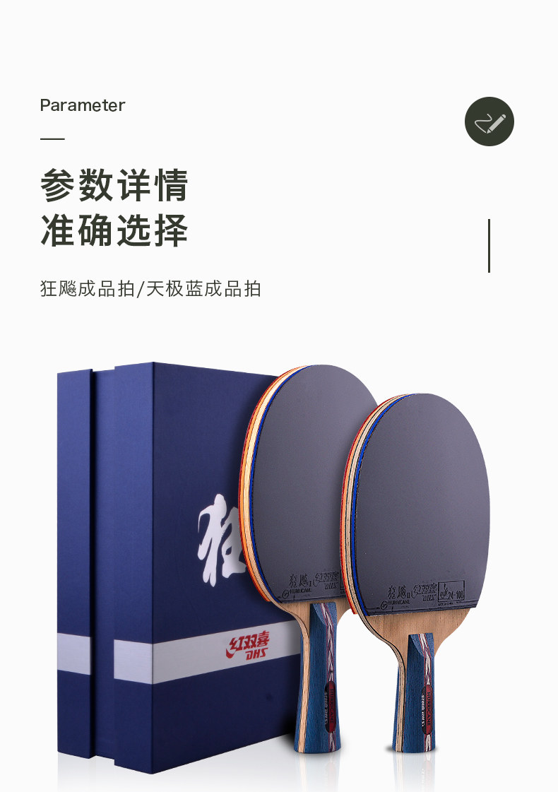产品名称 : 红双喜天极蓝乒乓球拍专业级十星单拍狂飙王蓝海棉兵乓拍单只横拍