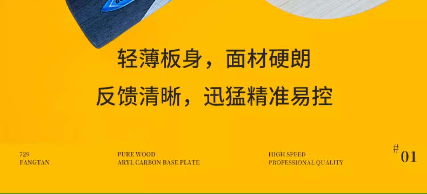产品名称 : 729友谊蓝芳碳AD外置黄芳碳AD内置乒乓球底板芳碳乒乓球拍横板