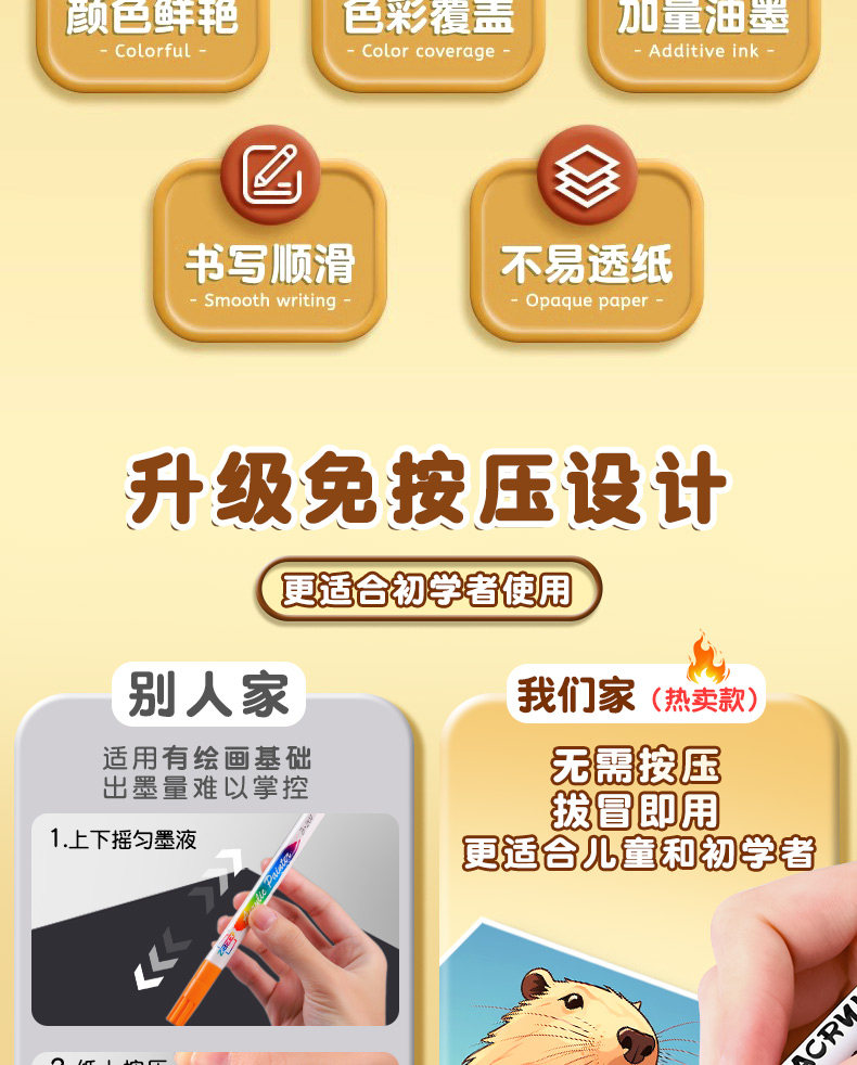 产品名称 : 小学生美术专用丙烯马克笔幼儿园儿童彩笔彩色笔不透色