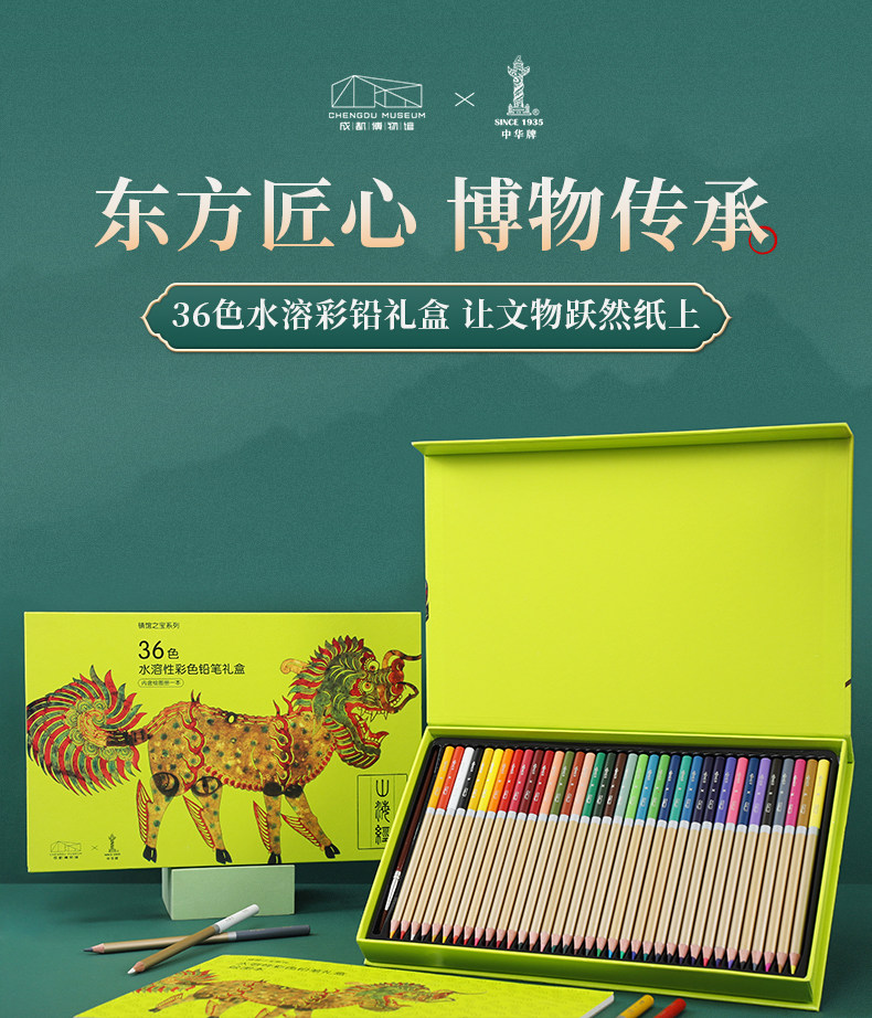 中华X成都博物馆联名镇店之宝系列之山海经礼盒装36色水溶性彩铅